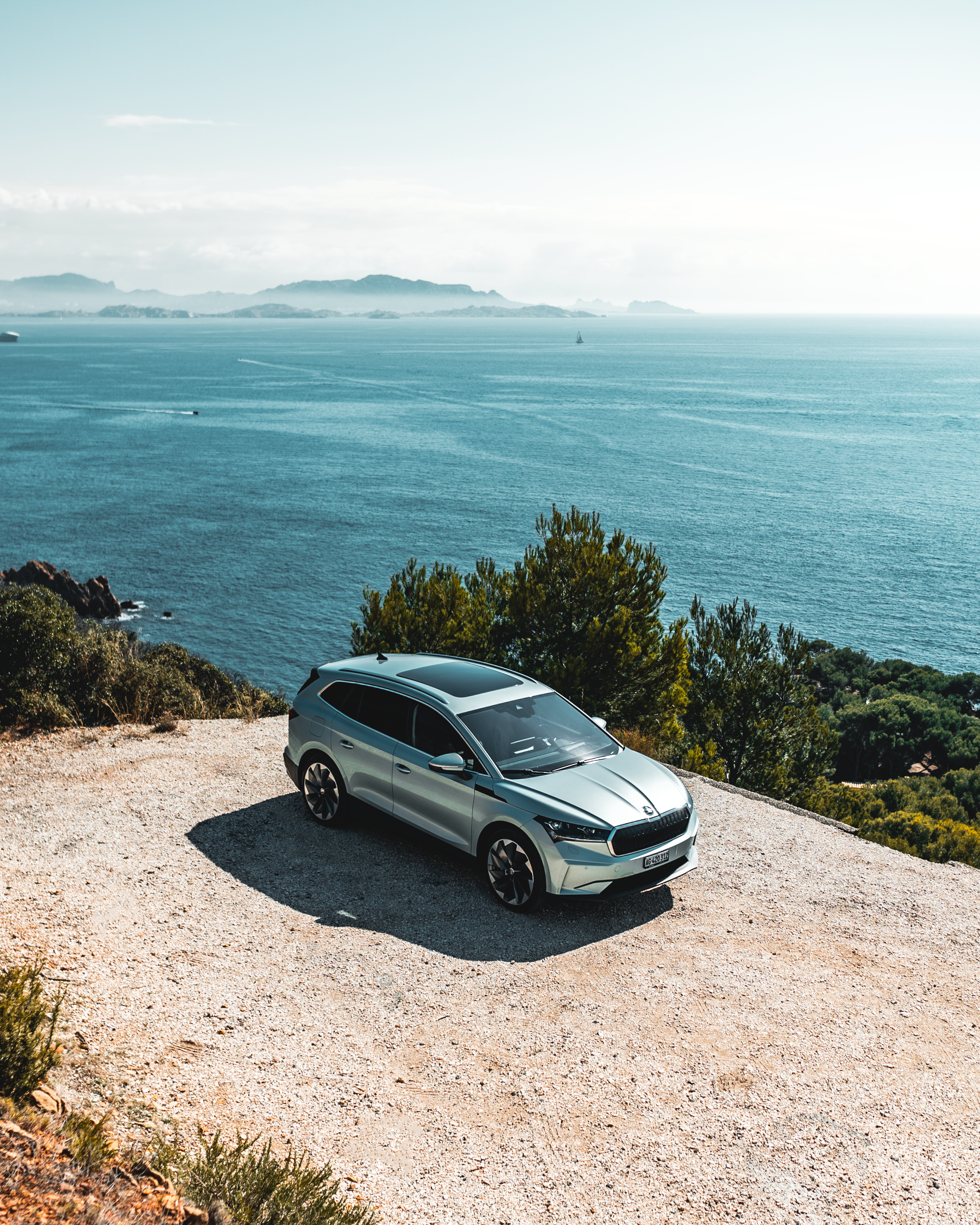 Durch die eindrucksvolle Verbindung der majestätischen französischen Küstenlandschaft, geschwungener Küstenstraßen und einer atmosphärischen Lichtinszenierung entstand einzigartiges Bildmaterial – kraftvoll, emotional und voller Ausdruck. Die Aufnahmen zeigen den Škoda Enyaq in seiner vollen Dynamik und Eleganz und fangen sowohl seine moderne Formensprache als auch seine Präsenz in beeindruckender Weise ein.